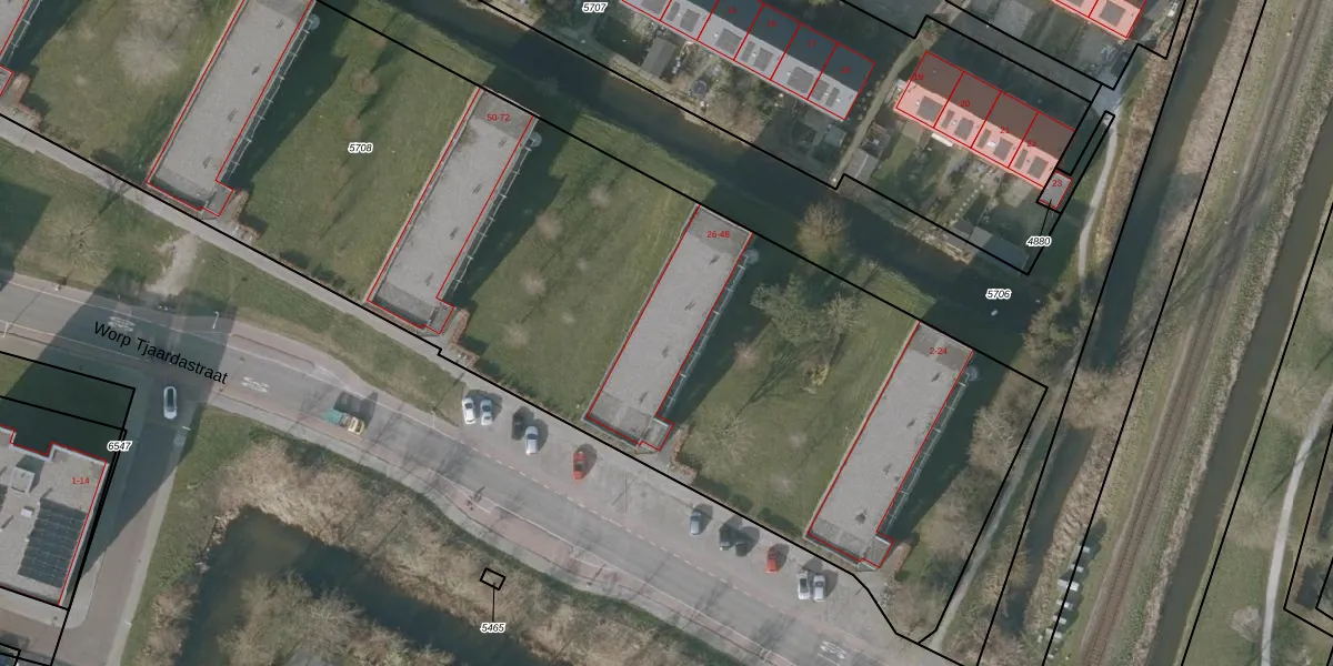 Worp Tjaardastraat 38 is gelegen op kadastraal perceel SNE00A5708. Deze kadastrale aanduiding is uniek en wordt gebruikt door het Kadaster om eigendomsrechten en andere zakelijke rechten vast te leggen. Het perceel maakt onderdeel uit van de kadastrale gemeente Sneek.
