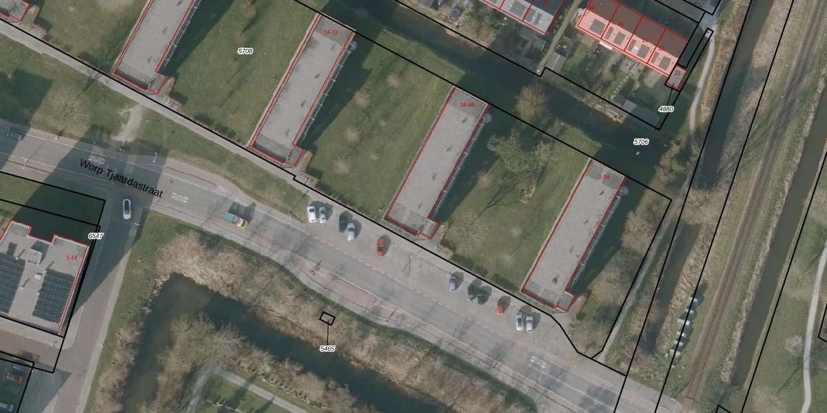 Worp Tjaardastraat 46 is gelegen op kadastraal perceel SNE00A5708. Deze kadastrale aanduiding is uniek en wordt gebruikt door het Kadaster om eigendomsrechten en andere zakelijke rechten vast te leggen. Het perceel maakt onderdeel uit van de kadastrale gemeente Sneek.