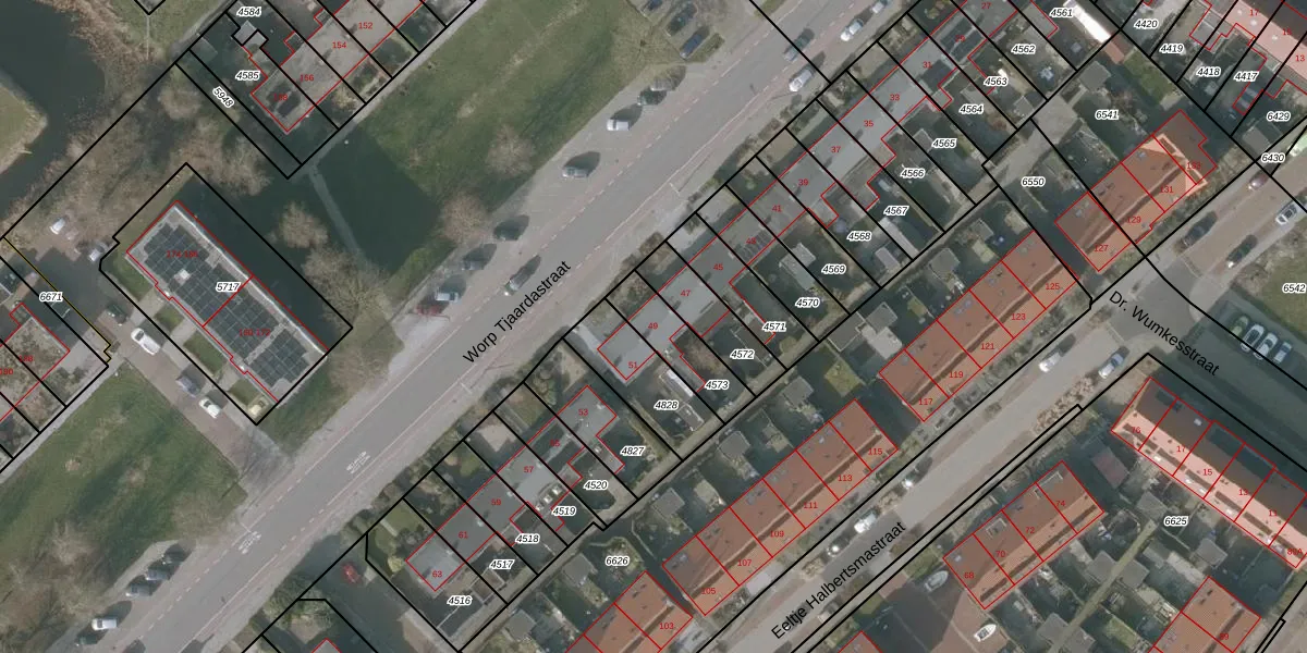 Worp Tjaardastraat 49 is gelegen op kadastraal perceel SNE00A4573. Deze kadastrale aanduiding is uniek en wordt gebruikt door het Kadaster om eigendomsrechten en andere zakelijke rechten vast te leggen. Het perceel maakt onderdeel uit van de kadastrale gemeente Sneek.