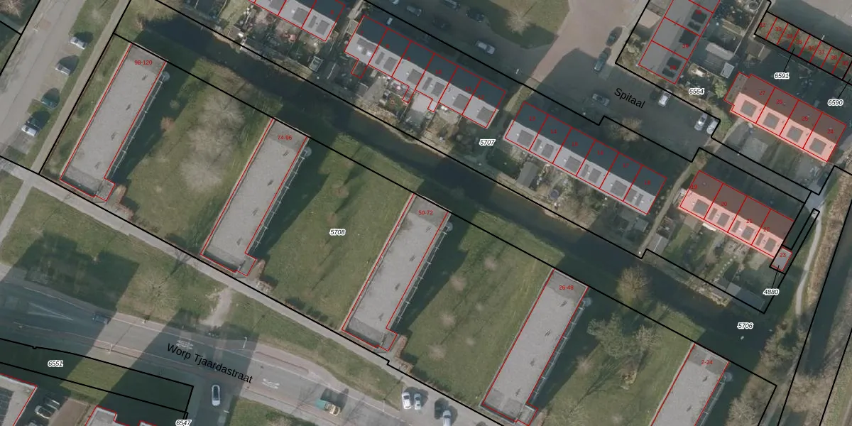 Worp Tjaardastraat 50 is gelegen op kadastraal perceel SNE00A5708. Deze kadastrale aanduiding is uniek en wordt gebruikt door het Kadaster om eigendomsrechten en andere zakelijke rechten vast te leggen. Het perceel maakt onderdeel uit van de kadastrale gemeente Sneek.