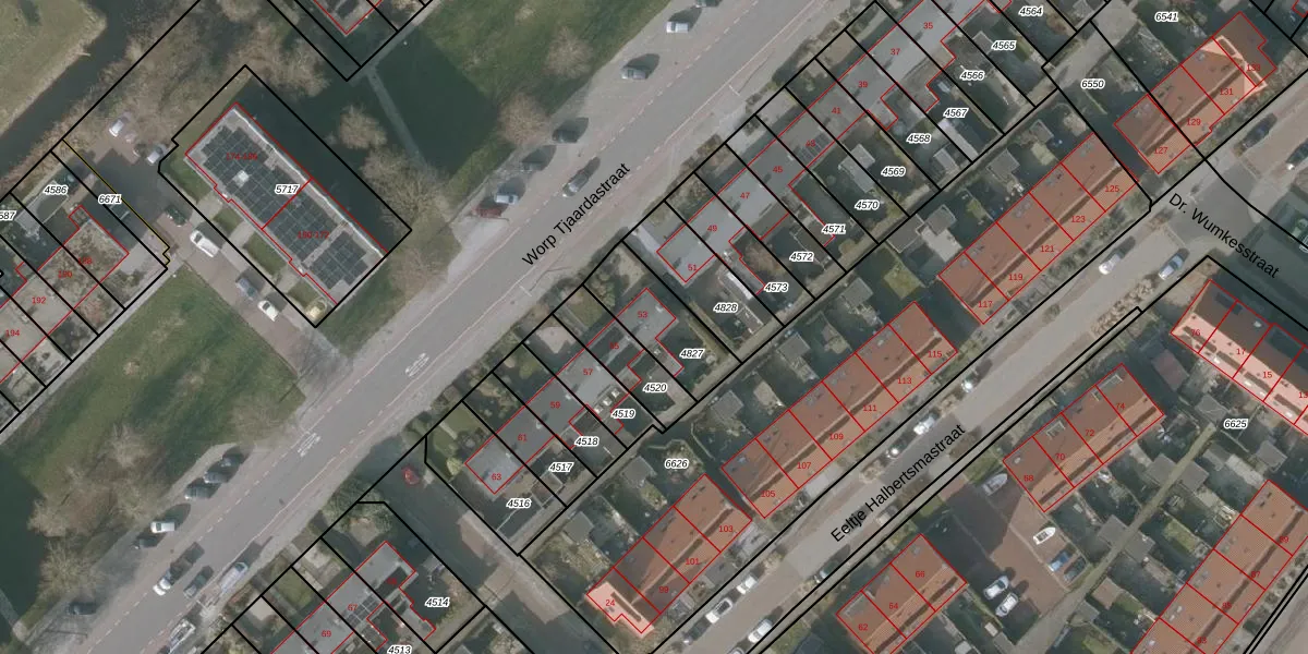 Worp Tjaardastraat 53 is gelegen op kadastraal perceel SNE00A4827. Deze kadastrale aanduiding is uniek en wordt gebruikt door het Kadaster om eigendomsrechten en andere zakelijke rechten vast te leggen. Het perceel maakt onderdeel uit van de kadastrale gemeente Sneek.