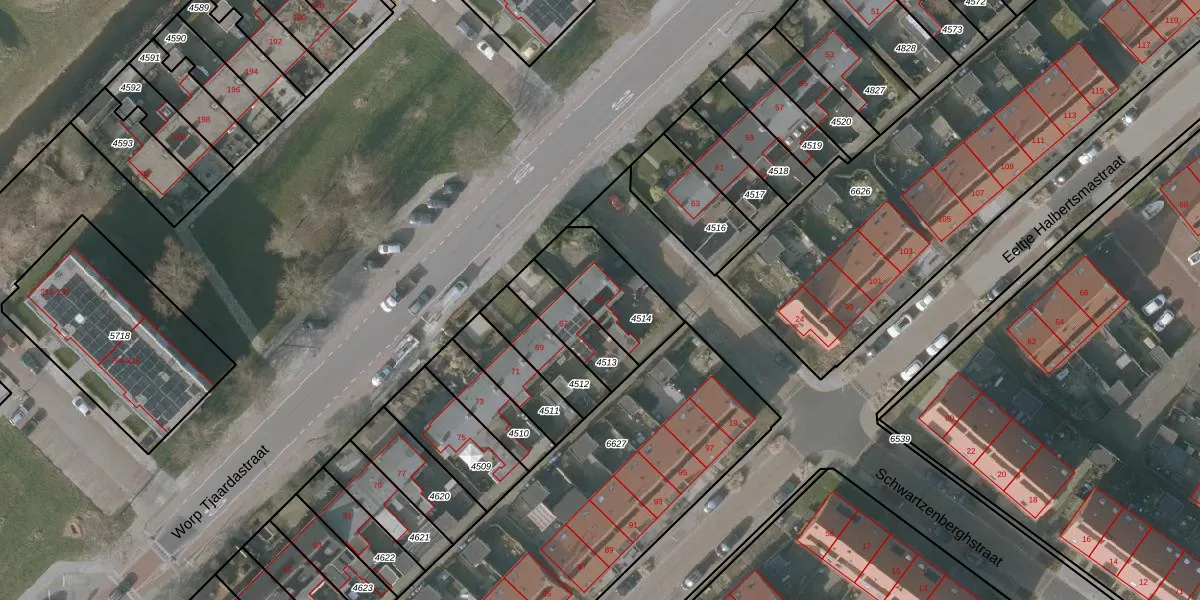 Worp Tjaardastraat 65 is gelegen op kadastraal perceel SNE00A4514. Deze kadastrale aanduiding is uniek en wordt gebruikt door het Kadaster om eigendomsrechten en andere zakelijke rechten vast te leggen. Het perceel maakt onderdeel uit van de kadastrale gemeente Sneek.