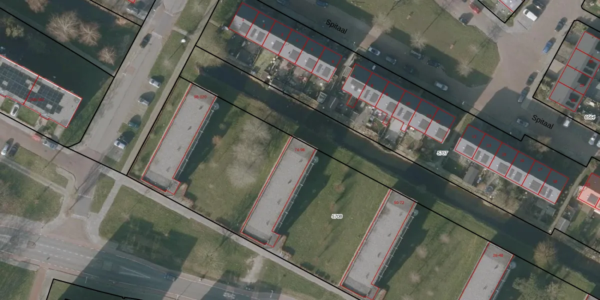 Het perceel waarop het adres ligt is SNE00-A-5708. De afkorting 'SNE00' staat voor kadastrale gemeente Sneek. Het perceel is met 6780 m² relatief groot. Het gemiddelde ligt in de kadastrale gemeente Sneek op 2093,37 m². De grootste perceeloppervlakte in de kadastrale gemeente is 61,3 ha. De kleinste oppervlakte bedraagt 0 m². Op het perceel liggen in totaal 60 adressen. De huidige grenzen van het perceel zijn digitaal in de Basisregistratie Kadaster (BRK) geregistreerd op 28-02-2003.