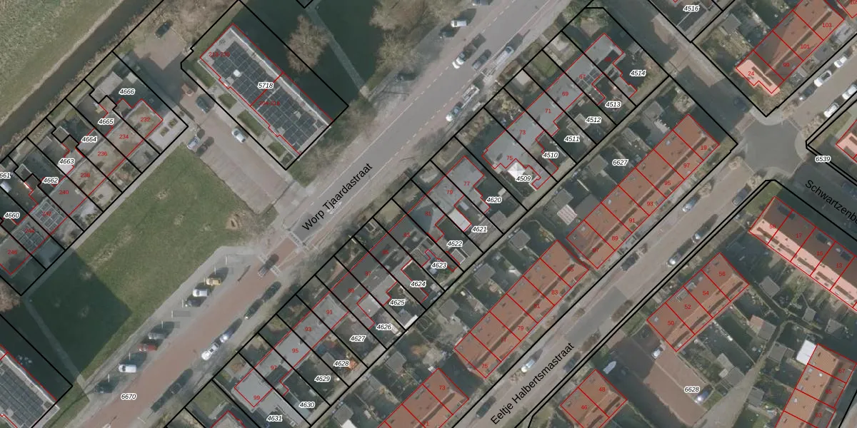 Worp Tjaardastraat 81 is gelegen op kadastraal perceel SNE00A4622. Deze kadastrale aanduiding is uniek en wordt gebruikt door het Kadaster om eigendomsrechten en andere zakelijke rechten vast te leggen. Het perceel maakt onderdeel uit van de kadastrale gemeente Sneek.