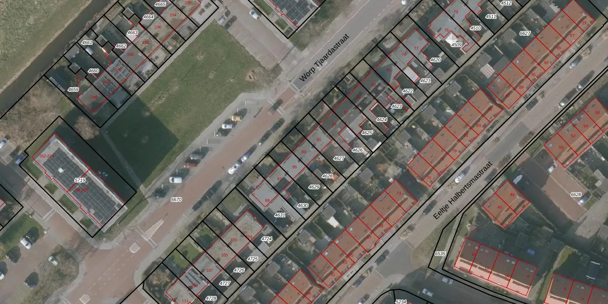 Worp Tjaardastraat 93 is gelegen op kadastraal perceel SNE00A4628. Deze kadastrale aanduiding is uniek en wordt gebruikt door het Kadaster om eigendomsrechten en andere zakelijke rechten vast te leggen. Het perceel maakt onderdeel uit van de kadastrale gemeente Sneek.