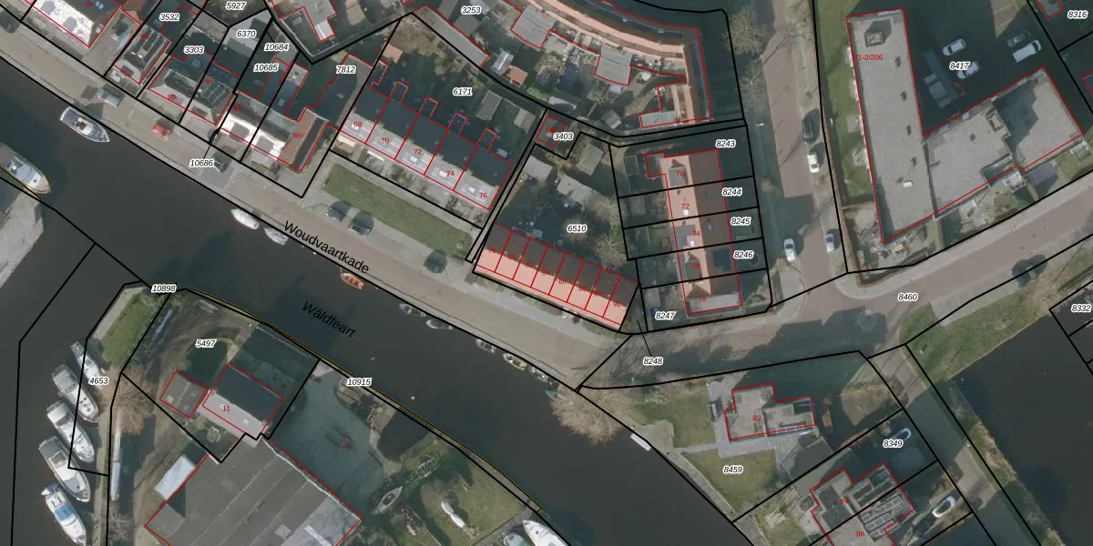 Woudvaartkade 84 is gelegen op kadastraal perceel SNE00C6510. Deze kadastrale aanduiding is uniek en wordt gebruikt door het Kadaster om eigendomsrechten en andere zakelijke rechten vast te leggen. Het perceel maakt onderdeel uit van de kadastrale gemeente Sneek.