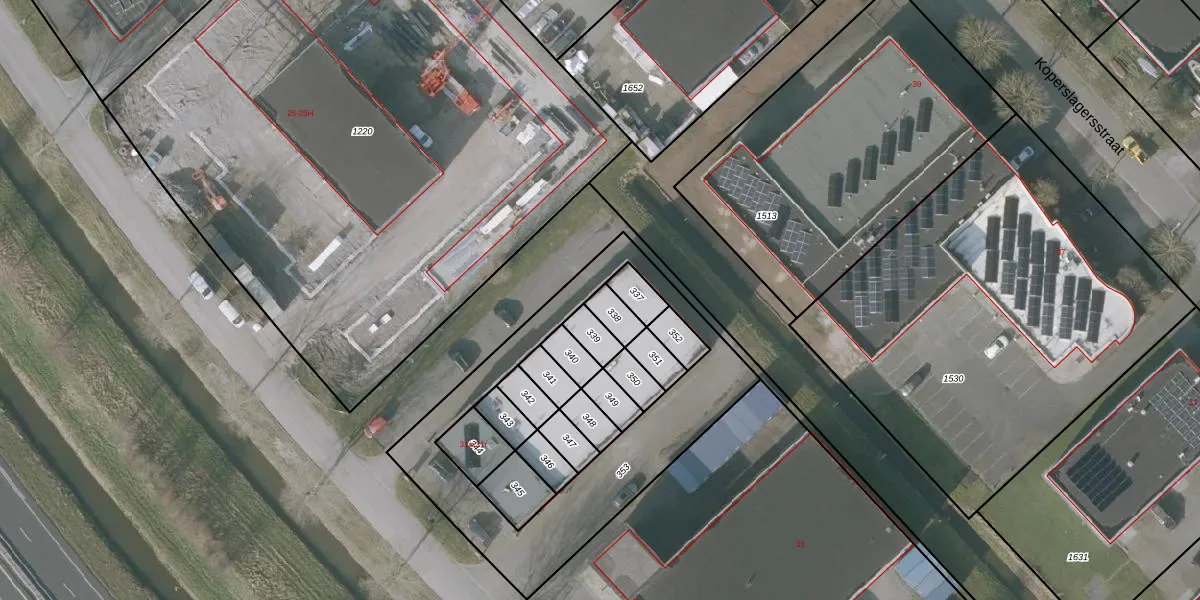 Gebruik de zoekbalk of klik op een perceel voor informatie over de adressen binnen dit perceel.