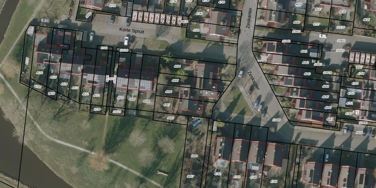 Zeskanter 10 is gelegen op kadastraal perceel SNE00C4496. Deze kadastrale aanduiding is uniek en wordt gebruikt door het Kadaster om eigendomsrechten en andere zakelijke rechten vast te leggen. Het perceel maakt onderdeel uit van de kadastrale gemeente Sneek.