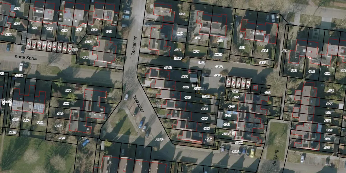 Gebruik de zoekbalk of klik op een perceel voor informatie over de adressen binnen dit perceel.