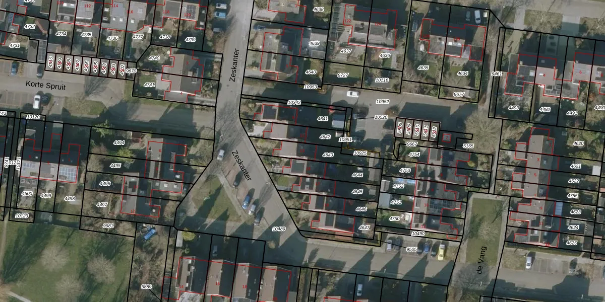 Zeskanter 13 is gelegen op kadastraal perceel SNE00C4643. Deze kadastrale aanduiding is uniek en wordt gebruikt door het Kadaster om eigendomsrechten en andere zakelijke rechten vast te leggen. Het perceel maakt onderdeel uit van de kadastrale gemeente Sneek.