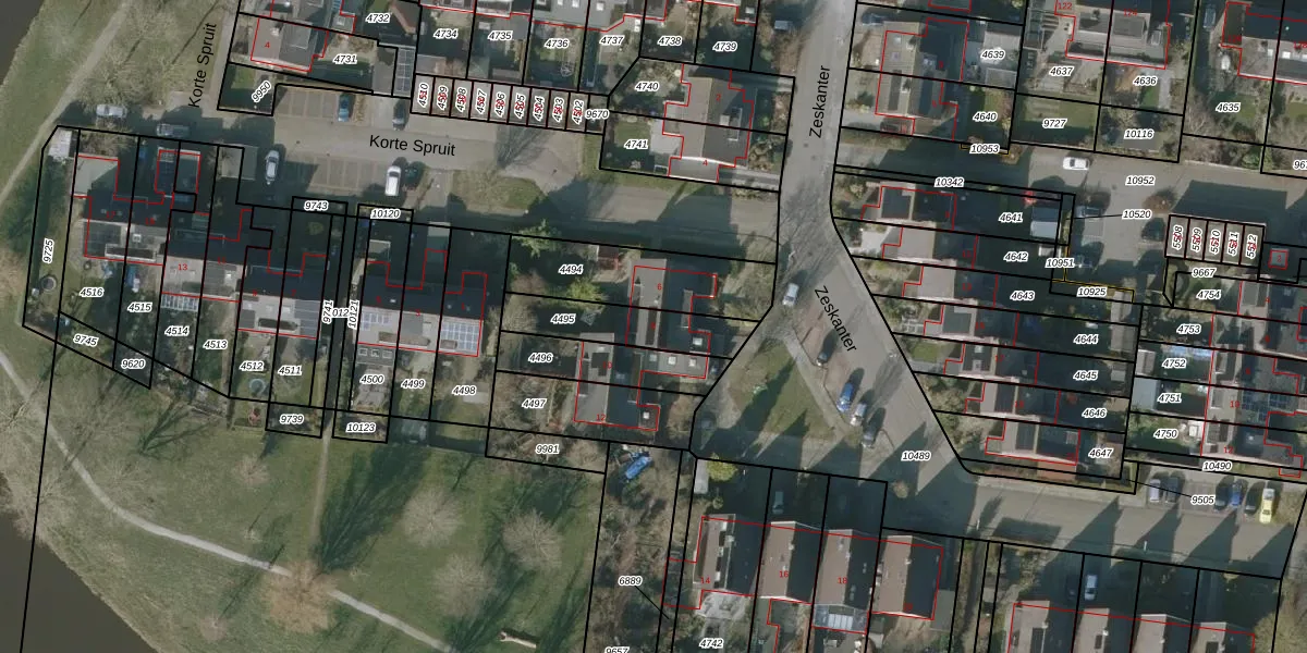 Gebruik de zoekbalk of klik op een perceel voor informatie over de adressen binnen dit perceel.