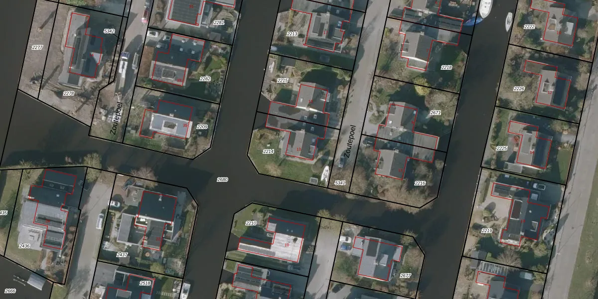 Zoutepoel 13 is gelegen op kadastraal perceel SNE00D2214. Deze kadastrale aanduiding is uniek en wordt gebruikt door het Kadaster om eigendomsrechten en andere zakelijke rechten vast te leggen. Het perceel maakt onderdeel uit van de kadastrale gemeente Sneek.