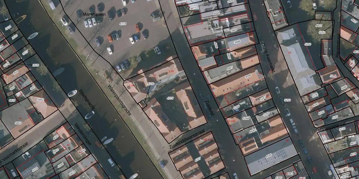 Het adres is gelegen op perceel 4775 in de sectie B en de kadastrale gemeente Sneek. De kadastrale aanduiding is aldus SNE00-B-4775. De gemiddelde perceelgrootte in Sneek is 2095,69 m². Dit perceel is kleiner: de perceeloppervlakte bedraagt 1190 m². Het grootste perceel in de kadastrale gemeente is 61,3 ha. Het kleinste perceel heeft een oppervlakte van 0 m². Er zijn 33 adressen aanwezig op het perceel. De huidige grenzen van het perceel zijn digitaal in de Basisregistratie Kadaster (BRK) geregistreerd op 04-05-2005.
