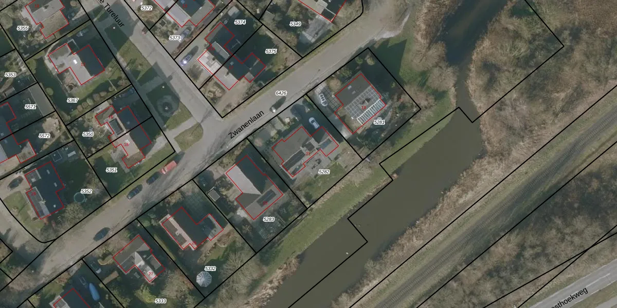 Zwanenlaan 21 is gelegen op kadastraal perceel SNE00A5282. Deze kadastrale aanduiding is uniek en wordt gebruikt door het Kadaster om eigendomsrechten en andere zakelijke rechten vast te leggen. Het perceel maakt onderdeel uit van de kadastrale gemeente Sneek.