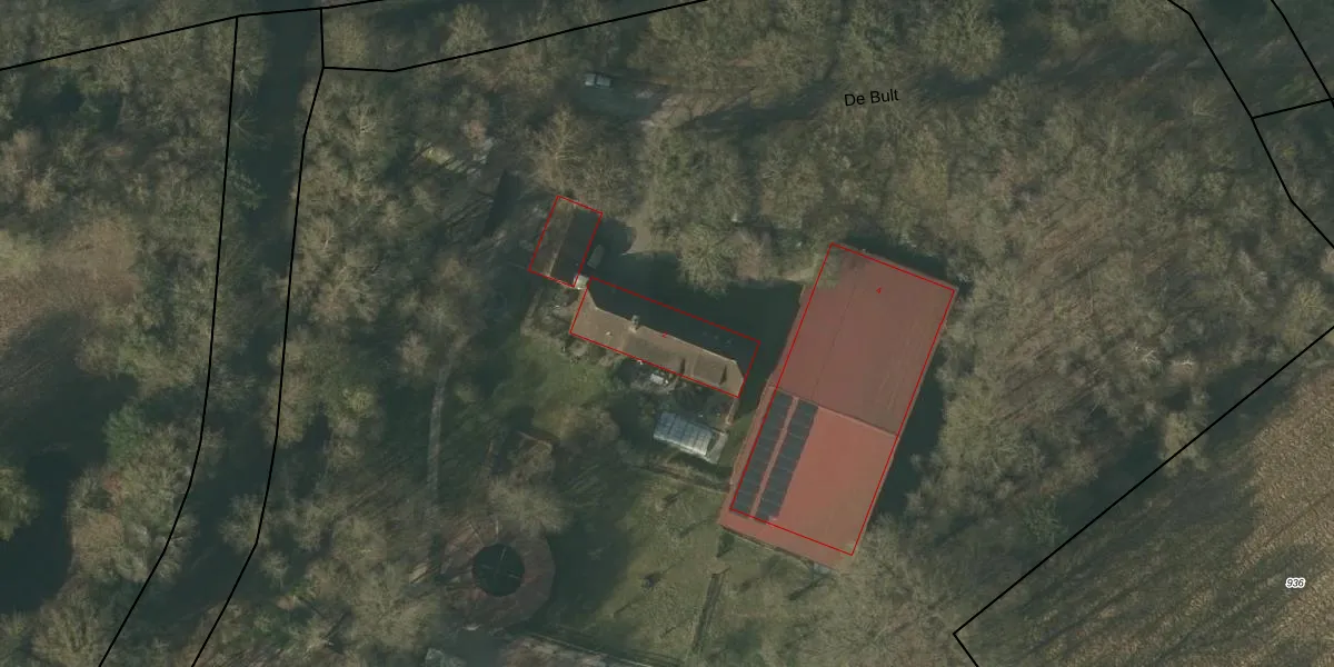 Het perceel waarop De Bult 2 staat heeft een oppervlakte van 4,1 ha. Dit is een zeer groot perceel. De perceeloppervlakte wordt geregistreerd door het Kadaster. Gedetailleerde informatie over de maten van dit perceel kunt u vinden in het rapport Kadastrale kaart met maatvoering van De Bult 2.