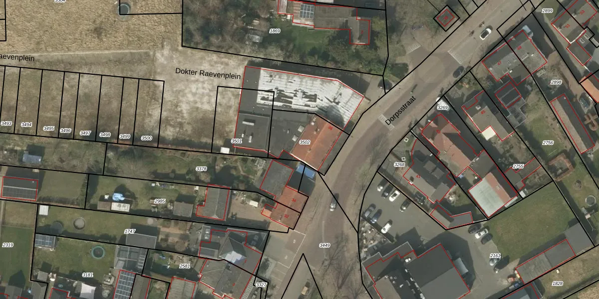 Dorpsstraat 36-b is gelegen op kadastraal perceel SRD00B3502. Deze kadastrale aanduiding is uniek en wordt gebruikt door het Kadaster om eigendomsrechten en andere zakelijke rechten vast te leggen. Het perceel maakt onderdeel uit van de kadastrale gemeente Soerendonk.