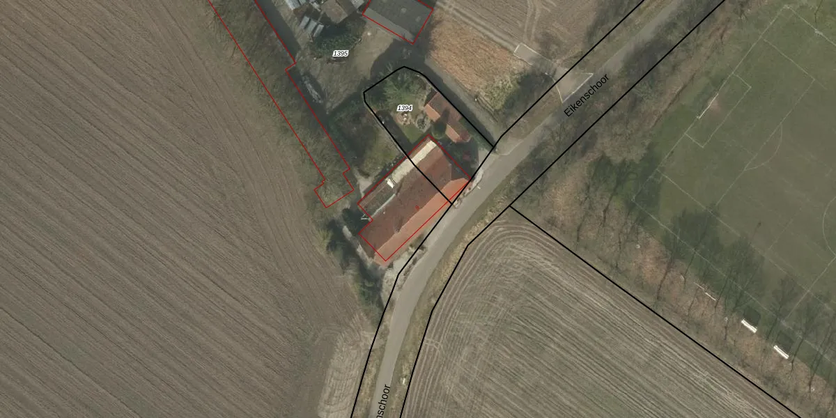 Het perceel waarop Eikenschoor 9 staat heeft een oppervlakte van 4,0 ha. Dit is een zeer groot perceel. De perceeloppervlakte wordt geregistreerd door het Kadaster. Gedetailleerde informatie over de maten van dit perceel kunt u vinden in het rapport Kadastrale kaart met maatvoering van Eikenschoor 9.