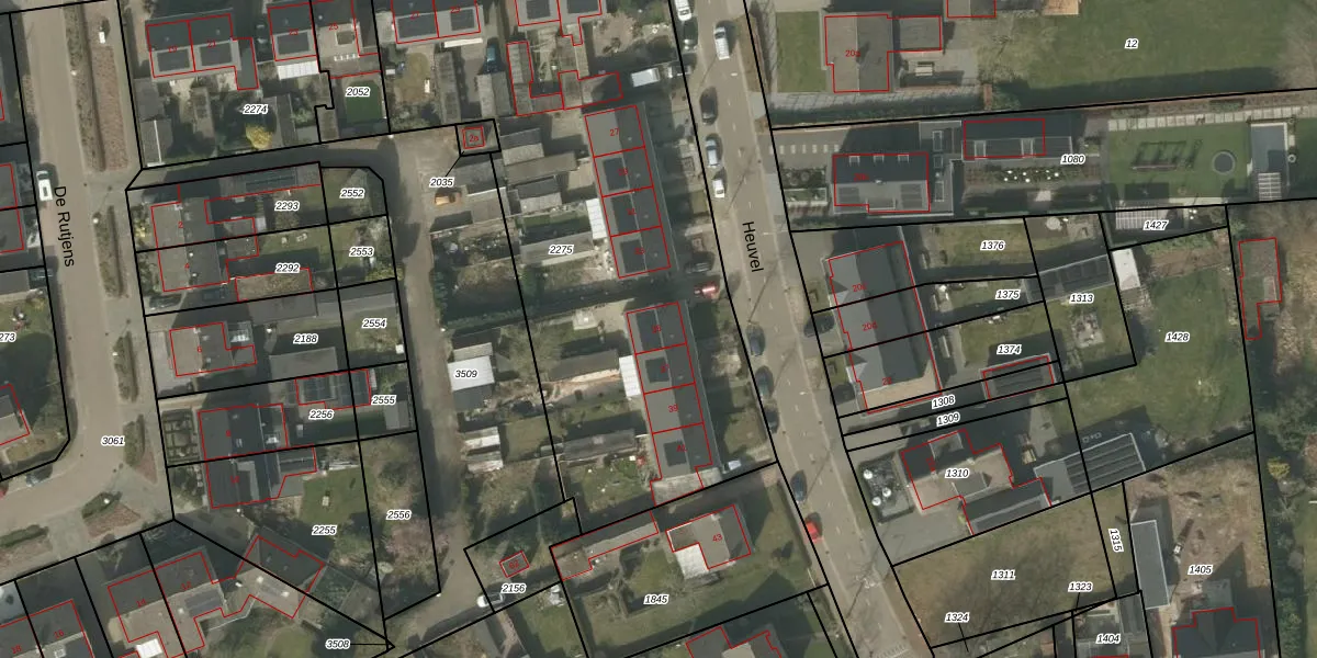 Heuvel 35 is gelegen op kadastraal perceel SRD00B2275. Deze kadastrale aanduiding is uniek en wordt gebruikt door het Kadaster om eigendomsrechten en andere zakelijke rechten vast te leggen. Het perceel maakt onderdeel uit van de kadastrale gemeente Soerendonk.