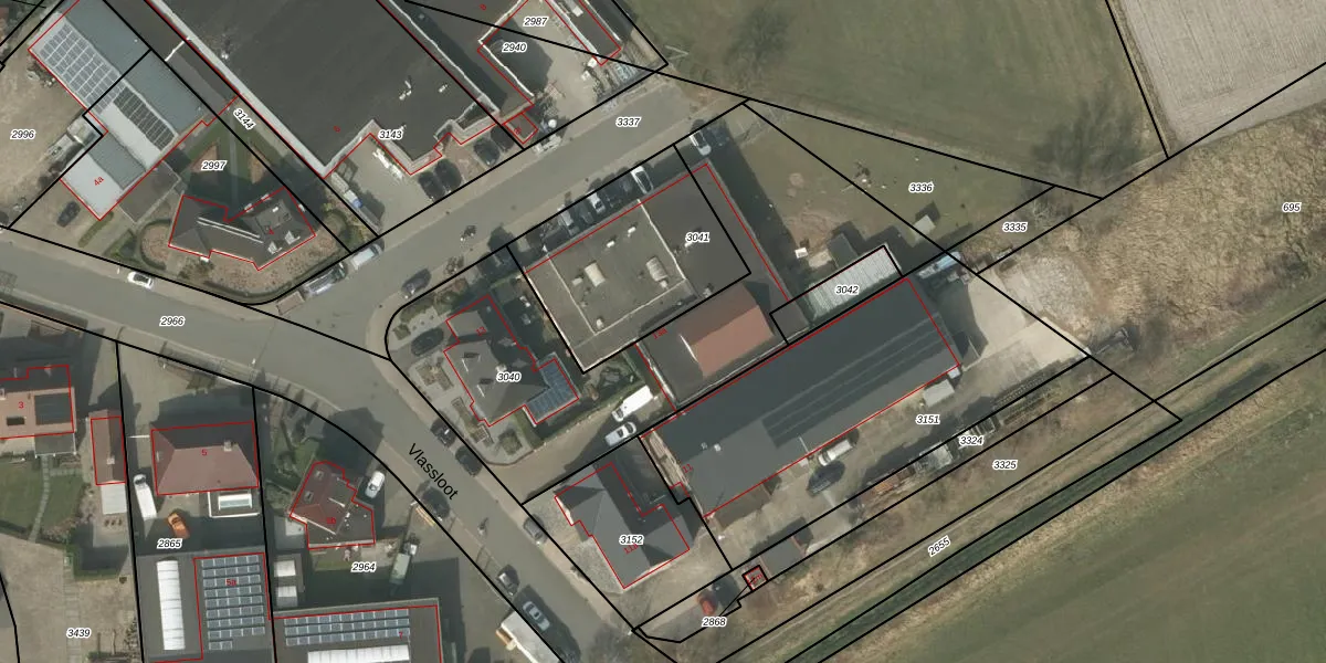Vlassloot 13-a is gelegen op kadastraal perceel SRD00B3040. Deze kadastrale aanduiding is uniek en wordt gebruikt door het Kadaster om eigendomsrechten en andere zakelijke rechten vast te leggen. Het perceel maakt onderdeel uit van de kadastrale gemeente Soerendonk.