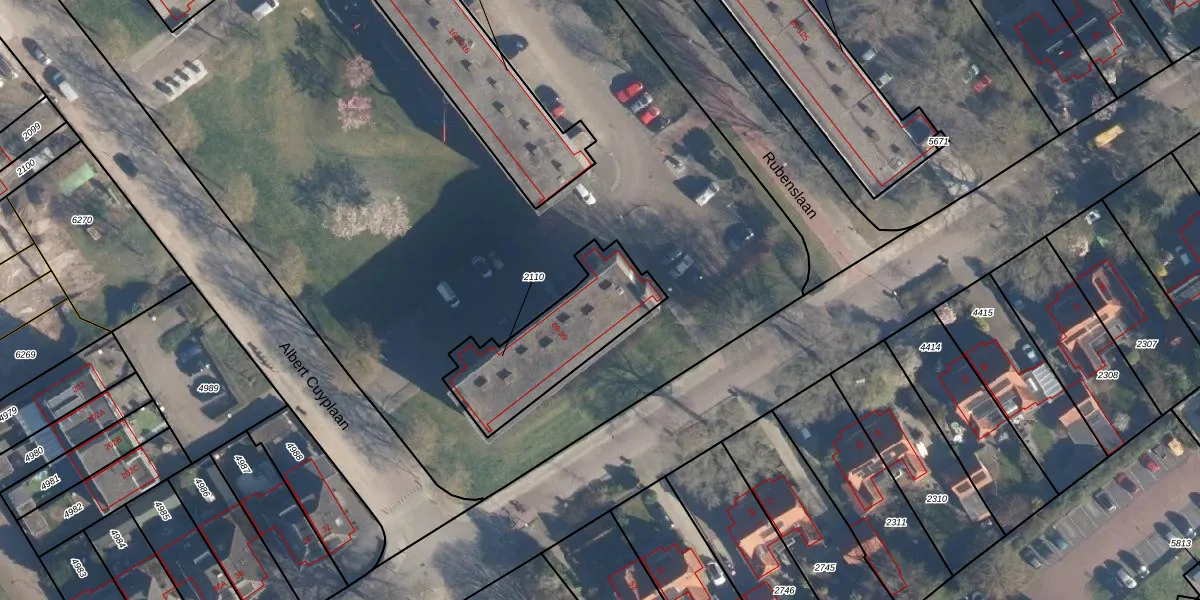 Albert Cuyplaan 83 is gelegen op kadastraal perceel SOE00K2110. Deze kadastrale aanduiding is uniek en wordt gebruikt door het Kadaster om eigendomsrechten en andere zakelijke rechten vast te leggen. Het perceel maakt onderdeel uit van de kadastrale gemeente Soest.