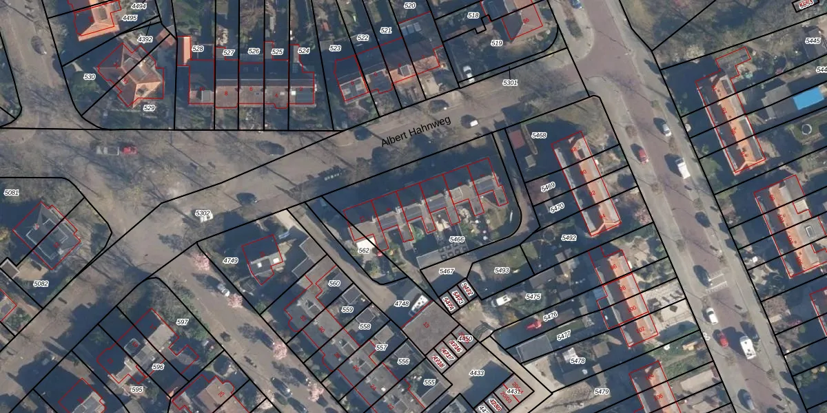 Het perceel waarop Albert Hahnweg 7 staat heeft een oppervlakte van 975 m². Dit is een groot perceel. De perceeloppervlakte wordt geregistreerd door het Kadaster. Gedetailleerde informatie over de maten van dit perceel kunt u vinden in het rapport Kadastrale kaart met maatvoering van Albert Hahnweg 7.