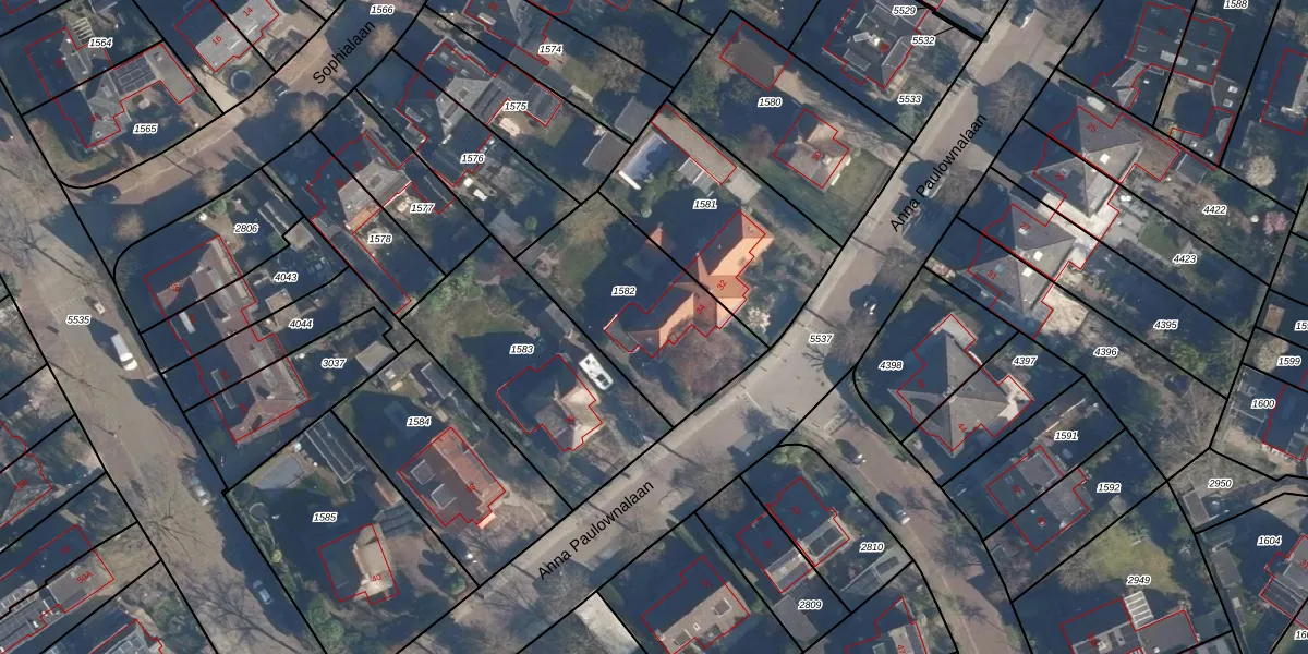 Het perceel waarop Anna Paulownalaan 34 staat heeft een oppervlakte van 620 m². Dit is een groot perceel. De perceeloppervlakte wordt geregistreerd door het Kadaster. Gedetailleerde informatie over de maten van dit perceel kunt u vinden in het rapport Kadastrale kaart met maatvoering van Anna Paulownalaan 34.
