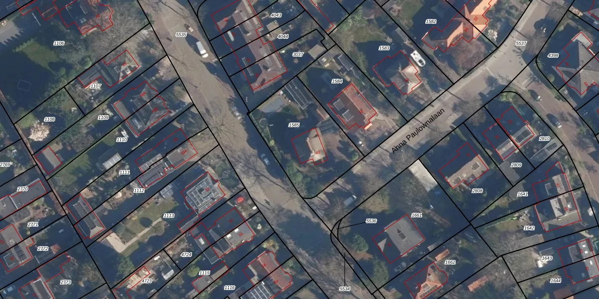 Het perceel waarop Anna Paulownalaan 40 staat heeft een oppervlakte van 800 m². Dit is een groot perceel. De perceeloppervlakte wordt geregistreerd door het Kadaster. Gedetailleerde informatie over de maten van dit perceel kunt u vinden in het rapport Kadastrale kaart met maatvoering van Anna Paulownalaan 40.
