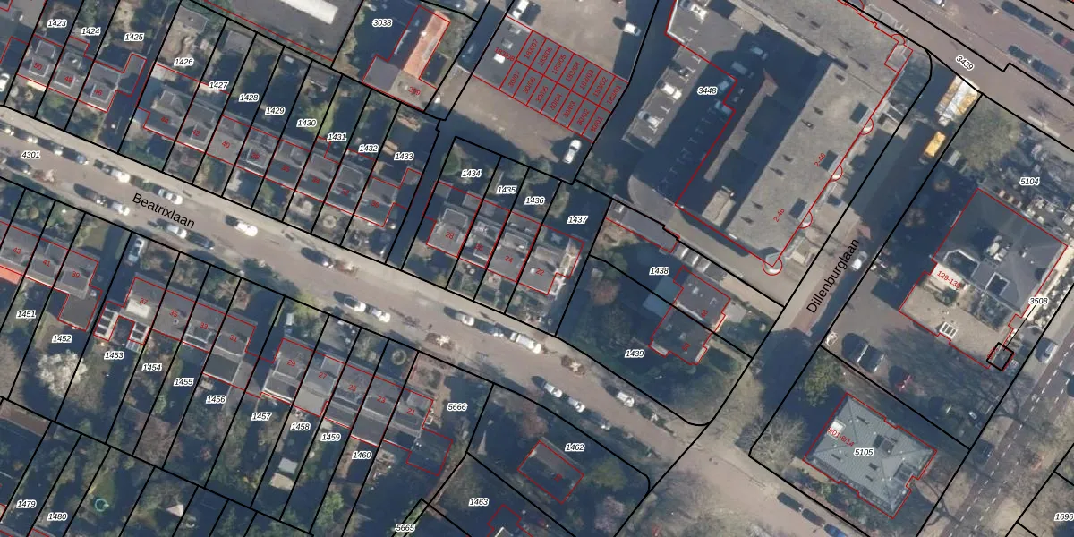 Beatrixlaan 22 is gelegen op kadastraal perceel SOE00K1437. Deze kadastrale aanduiding is uniek en wordt gebruikt door het Kadaster om eigendomsrechten en andere zakelijke rechten vast te leggen. Het perceel maakt onderdeel uit van de kadastrale gemeente Soest.