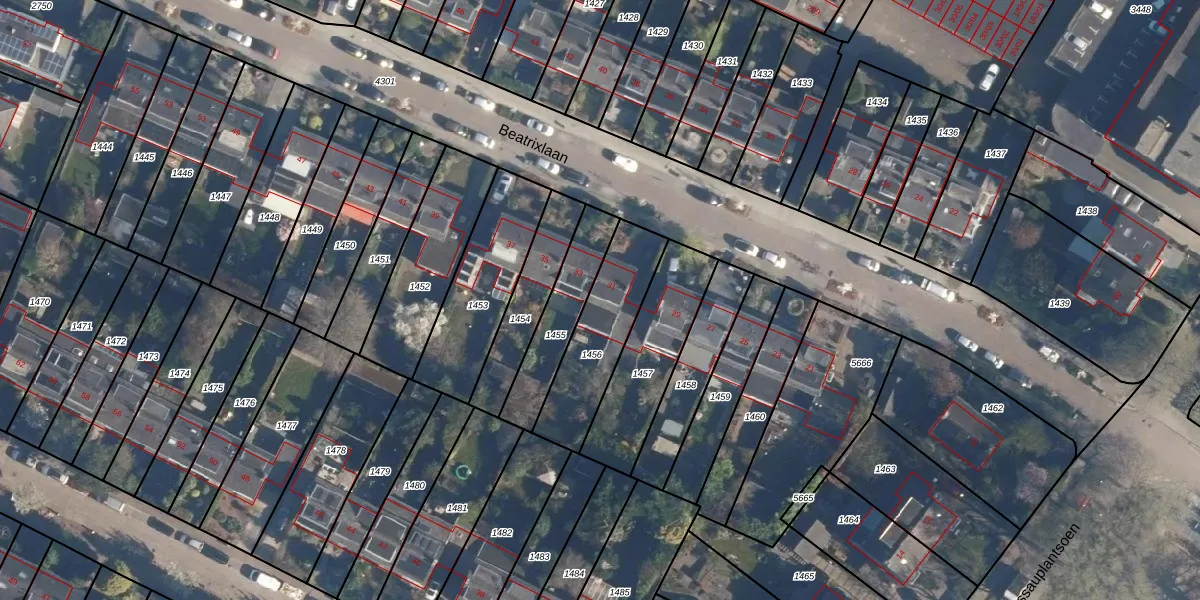 Gebruik de zoekbalk of klik op een perceel voor informatie over de adressen binnen dit perceel.