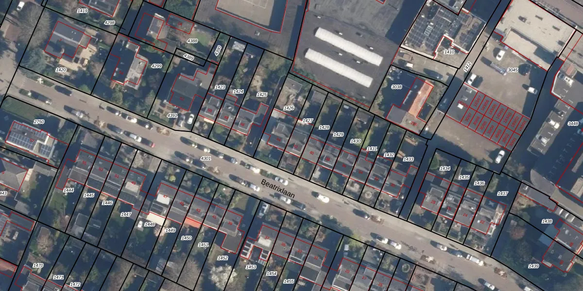 Het perceel waarop Beatrixlaan 42 staat heeft een oppervlakte van 185 m². Dit is een middelgroot perceel. De perceeloppervlakte wordt geregistreerd door het Kadaster. Gedetailleerde informatie over de maten van dit perceel kunt u vinden in het rapport Kadastrale kaart met maatvoering van Beatrixlaan 42.