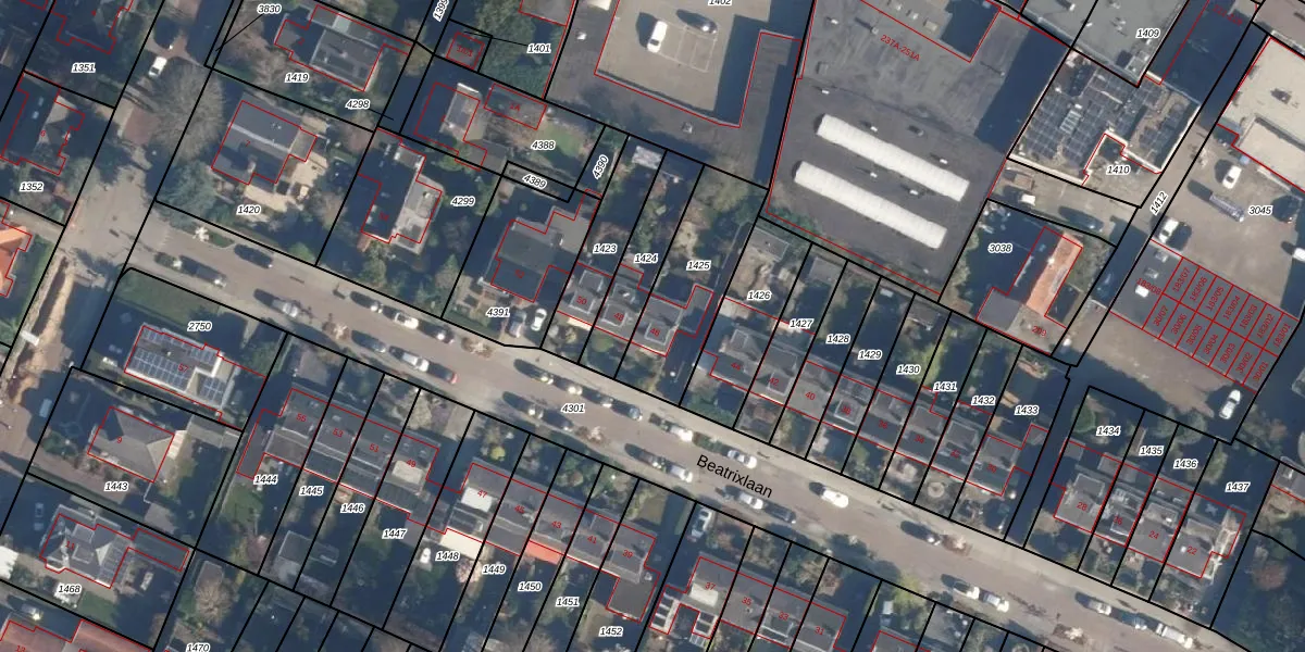 Het perceel waarop Beatrixlaan 46 staat heeft een oppervlakte van 387 m². Dit is een groot perceel. De perceeloppervlakte wordt geregistreerd door het Kadaster. Gedetailleerde informatie over de maten van dit perceel kunt u vinden in het rapport Kadastrale kaart met maatvoering van Beatrixlaan 46.