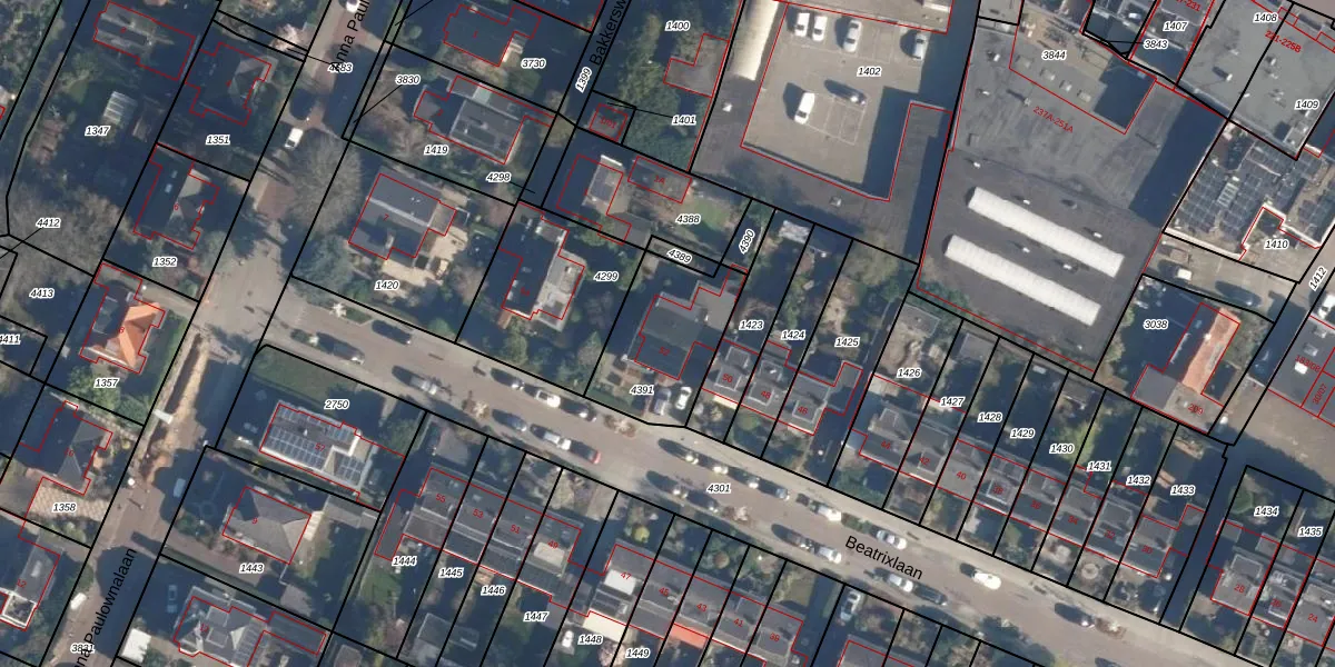 Het perceel waarop Beatrixlaan 52 staat heeft een oppervlakte van 380 m². Dit is een groot perceel. De perceeloppervlakte wordt geregistreerd door het Kadaster. Gedetailleerde informatie over de maten van dit perceel kunt u vinden in het rapport Kadastrale kaart met maatvoering van Beatrixlaan 52.