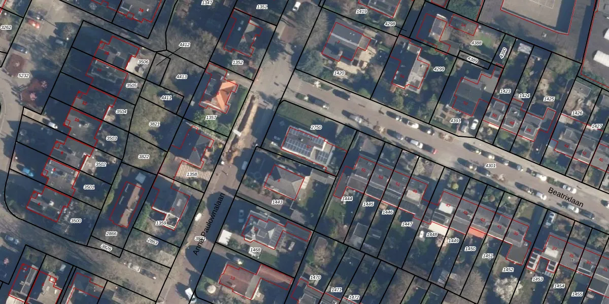 Het perceel waarop Beatrixlaan 57 staat heeft een oppervlakte van 472 m². Dit is een groot perceel. De perceeloppervlakte wordt geregistreerd door het Kadaster. Gedetailleerde informatie over de maten van dit perceel kunt u vinden in het rapport Kadastrale kaart met maatvoering van Beatrixlaan 57.