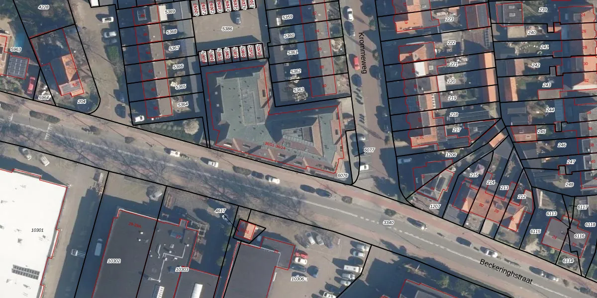 Het perceel waarop Beckeringhstraat 36-12 staat heeft een oppervlakte van 1379 m². Dit is een zeer groot perceel. De perceeloppervlakte wordt geregistreerd door het Kadaster. Gedetailleerde informatie over de maten van dit perceel kunt u vinden in het rapport Kadastrale kaart met maatvoering van Beckeringhstraat 36-12.