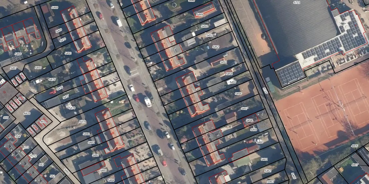 Gebruik de zoekbalk of klik op een perceel voor informatie over de adressen binnen dit perceel.