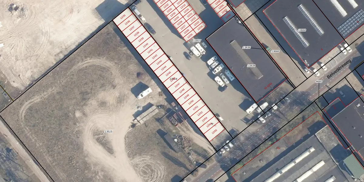 Belvedèreweg 12-48 is gelegen op kadastraal perceel SOE00G13514. Deze kadastrale aanduiding is uniek en wordt gebruikt door het Kadaster om eigendomsrechten en andere zakelijke rechten vast te leggen. Het perceel maakt onderdeel uit van de kadastrale gemeente Soest.