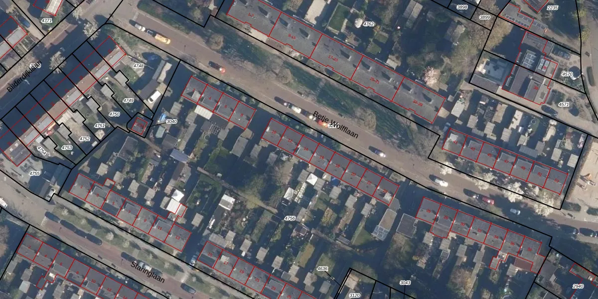 Betje Wolfflaan 14 is gelegen op kadastraal perceel SOE00C4756. Deze kadastrale aanduiding is uniek en wordt gebruikt door het Kadaster om eigendomsrechten en andere zakelijke rechten vast te leggen. Het perceel maakt onderdeel uit van de kadastrale gemeente Soest.
