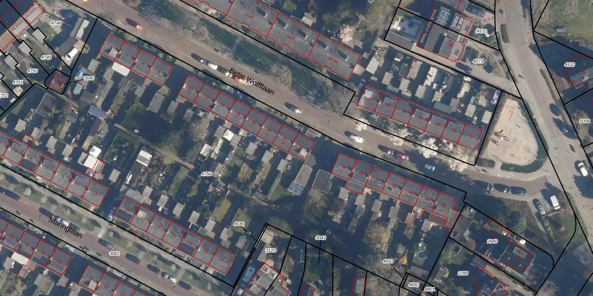 Betje Wolfflaan 24 is gelegen op kadastraal perceel SOE00C4756. Deze kadastrale aanduiding is uniek en wordt gebruikt door het Kadaster om eigendomsrechten en andere zakelijke rechten vast te leggen. Het perceel maakt onderdeel uit van de kadastrale gemeente Soest.