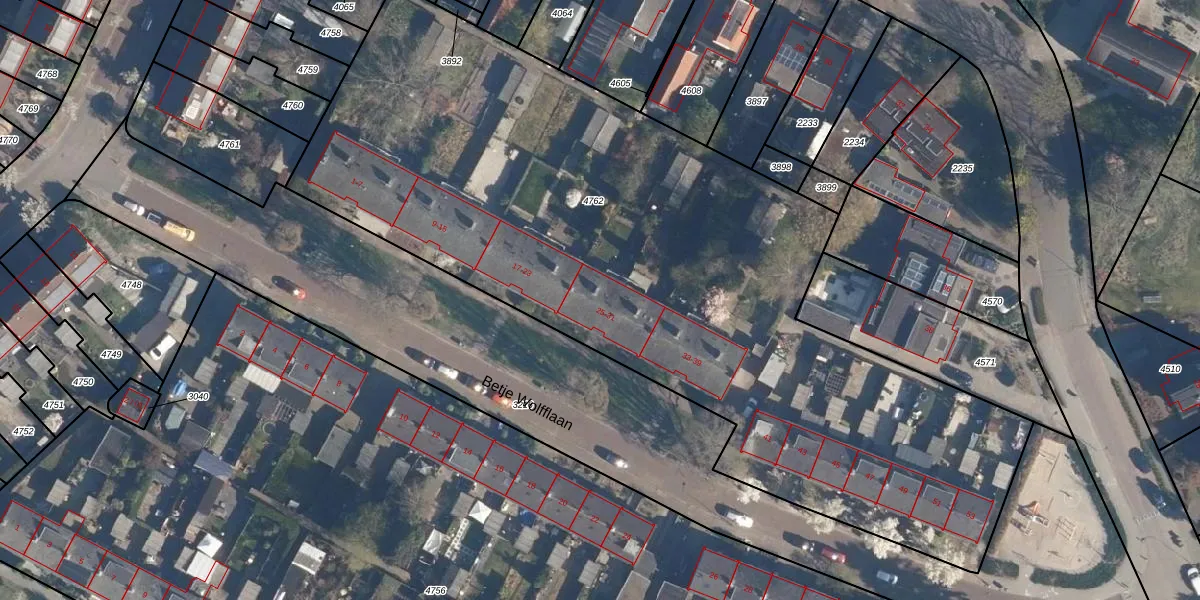 Betje Wolfflaan 29 is gelegen op kadastraal perceel SOE00C4762. Deze kadastrale aanduiding is uniek en wordt gebruikt door het Kadaster om eigendomsrechten en andere zakelijke rechten vast te leggen. Het perceel maakt onderdeel uit van de kadastrale gemeente Soest.