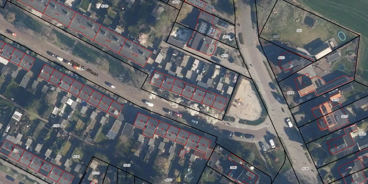 Betje Wolfflaan 47 is gelegen op kadastraal perceel SOE00C4762. Deze kadastrale aanduiding is uniek en wordt gebruikt door het Kadaster om eigendomsrechten en andere zakelijke rechten vast te leggen. Het perceel maakt onderdeel uit van de kadastrale gemeente Soest.