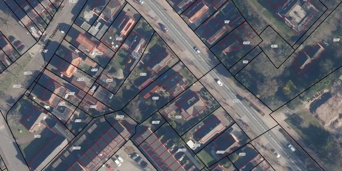 Gebruik de zoekbalk of klik op een perceel voor informatie over de adressen binnen dit perceel.