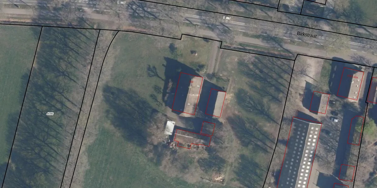 Het perceel waarop Birkstraat 110 staat heeft een oppervlakte van 1,8 ha. Dit is een zeer groot perceel. De perceeloppervlakte wordt geregistreerd door het Kadaster. Gedetailleerde informatie over de maten van dit perceel kunt u vinden in het rapport Kadastrale kaart met maatvoering van Birkstraat 110.