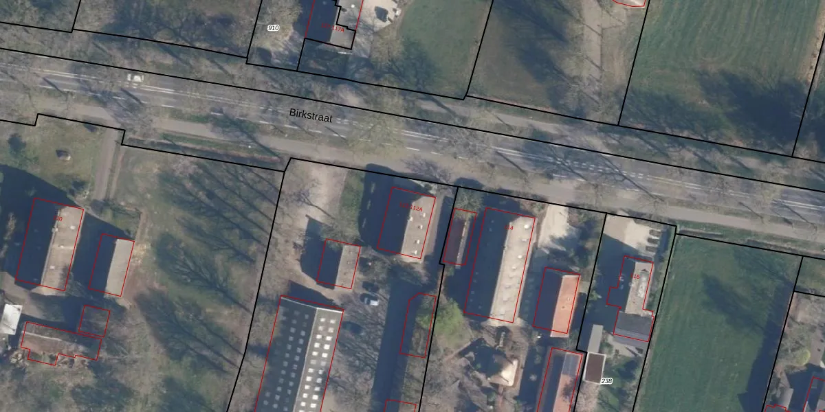 Het perceel waarop Birkstraat 112 staat heeft een oppervlakte van 4,7 ha. Dit is een zeer groot perceel. De perceeloppervlakte wordt geregistreerd door het Kadaster. Gedetailleerde informatie over de maten van dit perceel kunt u vinden in het rapport Kadastrale kaart met maatvoering van Birkstraat 112.