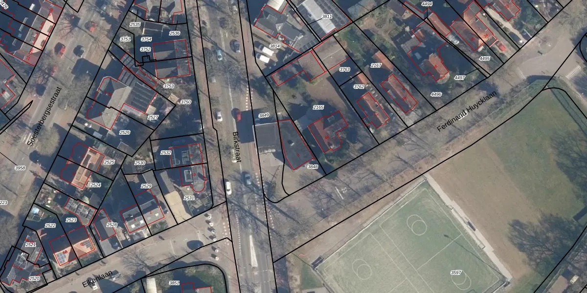 Birkstraat 9 is gelegen op kadastraal perceel SOE00C3848. Deze kadastrale aanduiding is uniek en wordt gebruikt door het Kadaster om eigendomsrechten en andere zakelijke rechten vast te leggen. Het perceel maakt onderdeel uit van de kadastrale gemeente Soest.