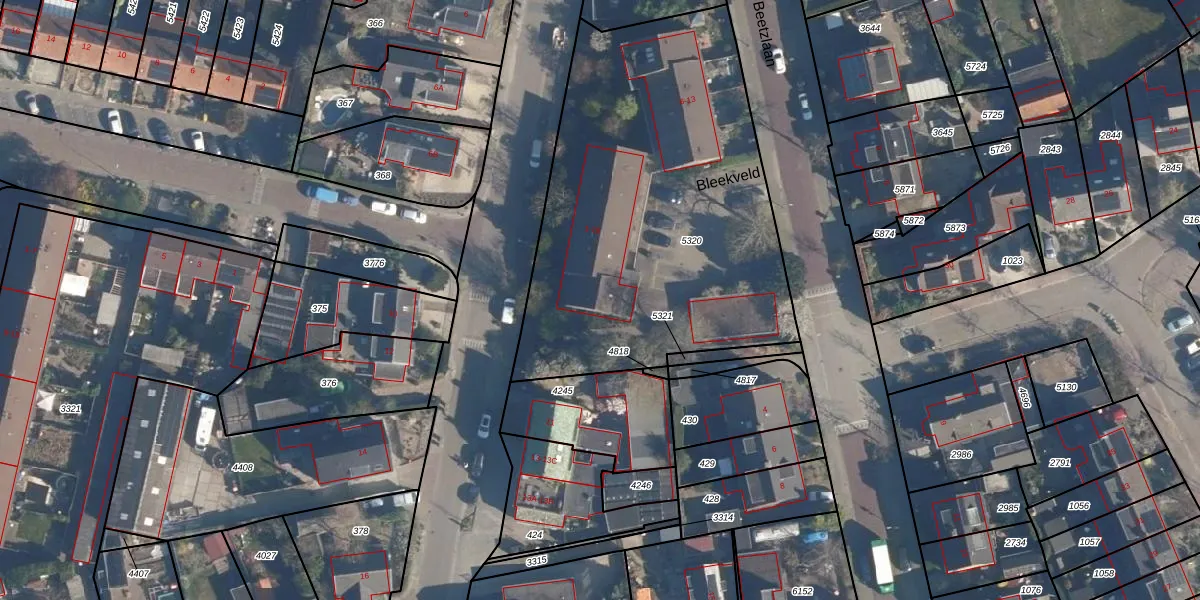 Bleekveld 1 is gelegen op kadastraal perceel SOE00K5320. Deze kadastrale aanduiding is uniek en wordt gebruikt door het Kadaster om eigendomsrechten en andere zakelijke rechten vast te leggen. Het perceel maakt onderdeel uit van de kadastrale gemeente Soest.