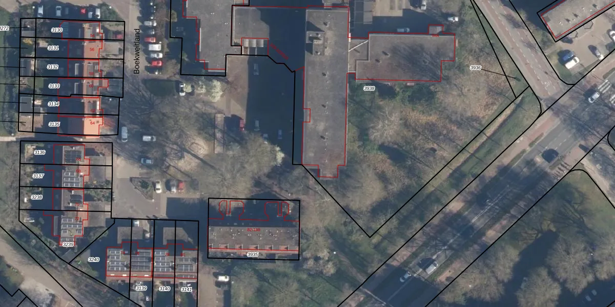 Het perceel waarop Boekweitland 103-004 staat heeft een oppervlakte van 5110 m². Dit is een zeer groot perceel. De perceeloppervlakte wordt geregistreerd door het Kadaster. Gedetailleerde informatie over de maten van dit perceel kunt u vinden in het rapport Kadastrale kaart met maatvoering van Boekweitland 103-004.
