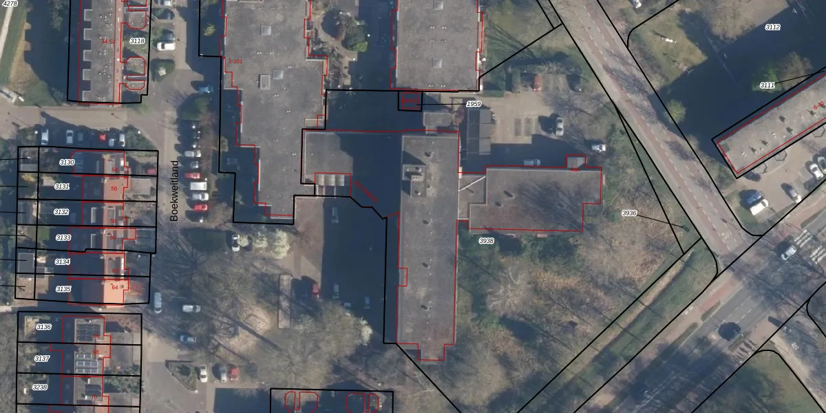 Het perceel waarop Boekweitland 103-201 staat heeft een oppervlakte van 5110 m². Dit is een zeer groot perceel. De perceeloppervlakte wordt geregistreerd door het Kadaster. Gedetailleerde informatie over de maten van dit perceel kunt u vinden in het rapport Kadastrale kaart met maatvoering van Boekweitland 103-201.
