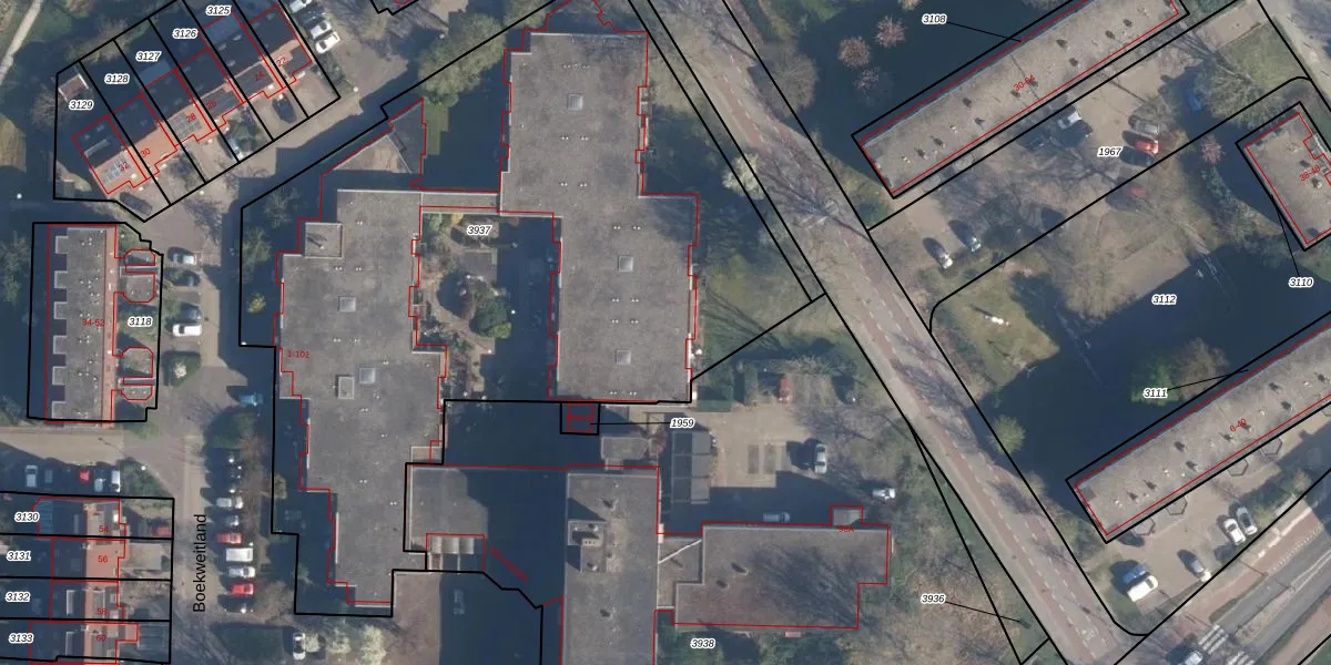 Het perceel waarop Boekweitland 39 staat heeft een oppervlakte van 4295 m². Dit is een zeer groot perceel. De perceeloppervlakte wordt geregistreerd door het Kadaster. Gedetailleerde informatie over de maten van dit perceel kunt u vinden in het rapport Kadastrale kaart met maatvoering van Boekweitland 39.