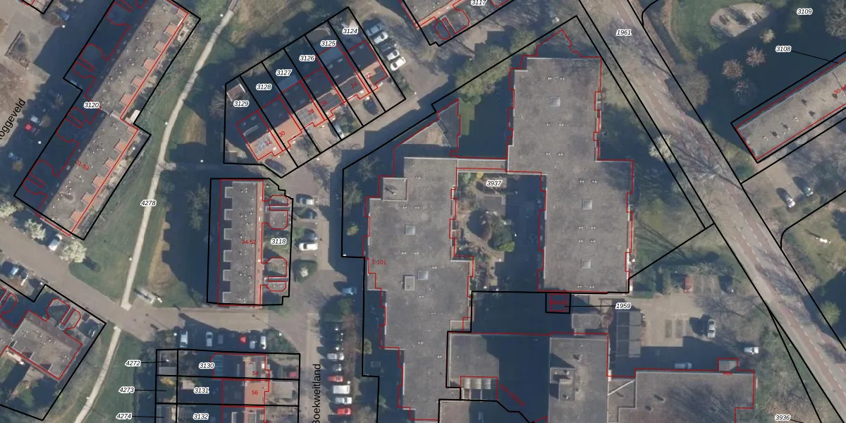 Het perceel waarop Boekweitland 71 staat heeft een oppervlakte van 4295 m². Dit is een zeer groot perceel. De perceeloppervlakte wordt geregistreerd door het Kadaster. Gedetailleerde informatie over de maten van dit perceel kunt u vinden in het rapport Kadastrale kaart met maatvoering van Boekweitland 71.