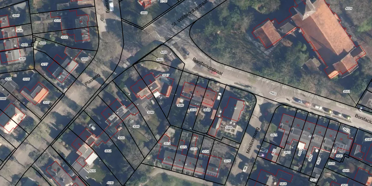 Bonifaciusstraat 2 is gelegen op kadastraal perceel SOE00D3046. Deze kadastrale aanduiding is uniek en wordt gebruikt door het Kadaster om eigendomsrechten en andere zakelijke rechten vast te leggen. Het perceel maakt onderdeel uit van de kadastrale gemeente Soest.